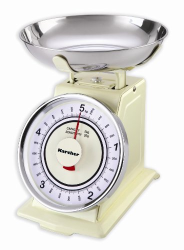 Die Karcher Mechanische Retro Küchenwaage ist für fünf Kilogramm ausgelegt und bietet innerhalb dieser Skala eine sehr genaue Anzeige des Gewichts. Da die Waage mechanisch ist, wird das exakte Gewicht auf einer Zeiger-Skala abgelesen, die in Abschnitten von 20 Gramm eingeteilt ist. Durch ein Einstellungsrädchen ist die Nullstellung nachjustierbar.