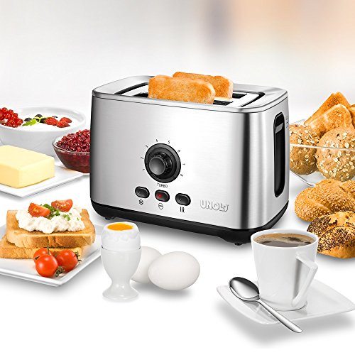Mit dem Unold 38955 Toaster Turbo lassen sich nicht nur Toasts rasant schnell bräunen. Der Toaster verfügt über einen Brötchenaufsatz, sodass auch das Bräunen von Brötchen schnell möglich ist. Wer seine Toasts schön cross mag, kann den stufenlos einstellbarem Röstgrad nutzen, mit die Brötchen und Toasts so knusprig werden, wie man es individuell wünscht. Mit soviel Leistung und der modernen, neuen Turbofunktion geht auch das Auftauen mittels der Auftaufunktion sehr schnell.